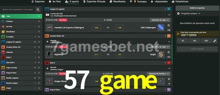 A aposta 57 game oferece aos jogadores a experiência mais conveniente de apostas em eSports!